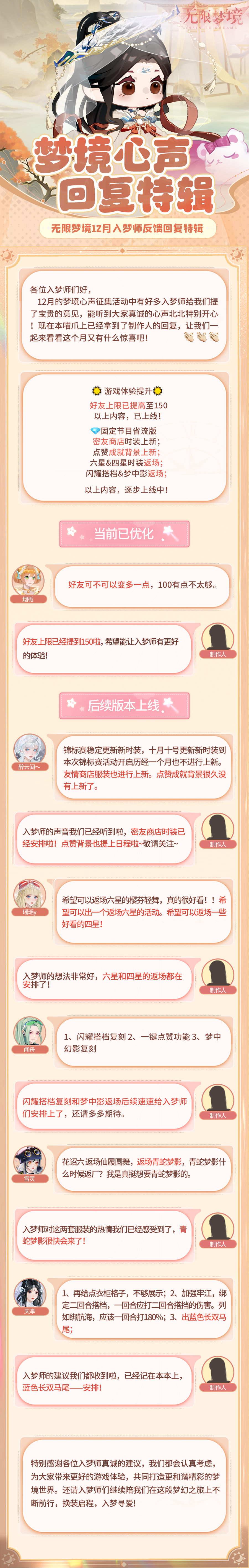 意见反馈 | 12月梦境心声回复特辑