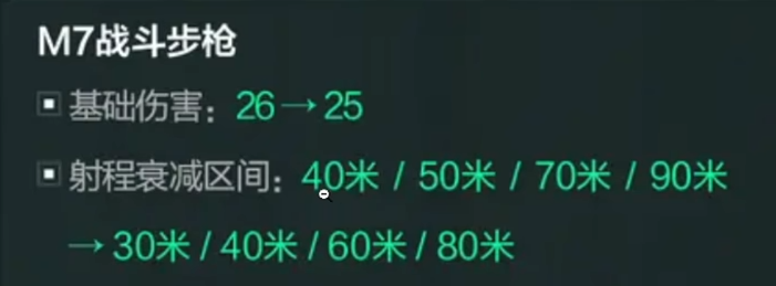 作为一把大威力的步枪,这一次更新可以说直接砍到了大动脉上。M7现在的基础伤害降低到了25点,这意味着它失去了一枪头两枪身子的极限TTK,并且射速也有所削减。