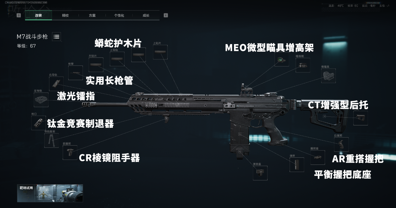 其次是来说手这次实用的两个新配件【CT增强型后托】,它的第一层优势在于,它虽然提供的操控速度加成并不多,但却增加了更多的开镜移速,M7主打卡点,那么开镜移速快了之后小身位探头更有优势。第二层在于这个配件是通用配件,武器0级就可以用,适合武器开荒练级时使用。