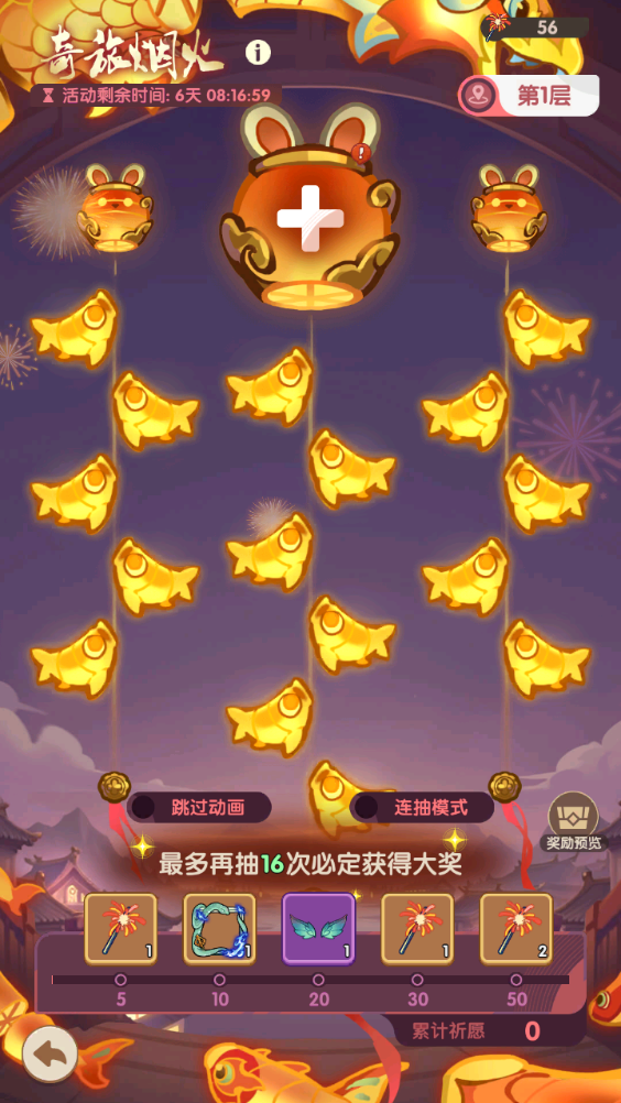 奇旅烟花将是本次活动的重头戏,殿下们需要通过消耗道具呲花儿点燃鱼龙,即可欣赏绚丽烟花和领惊喜大奖~