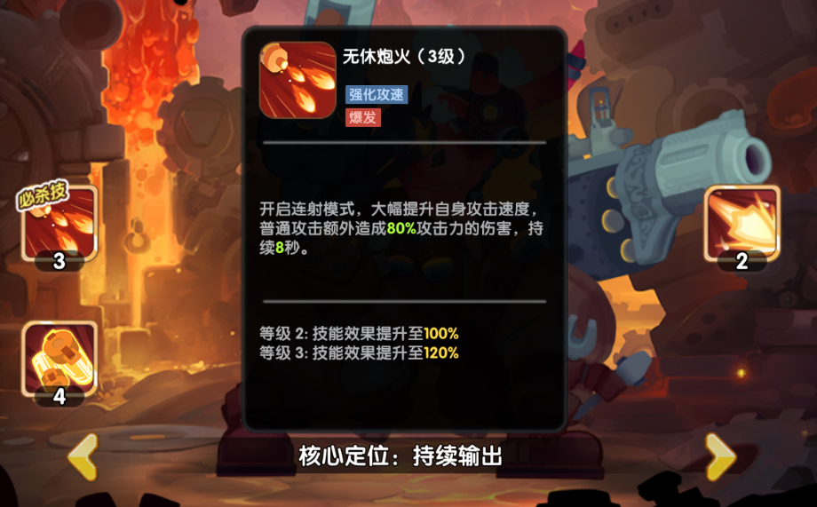 【必杀技】:无休炮火