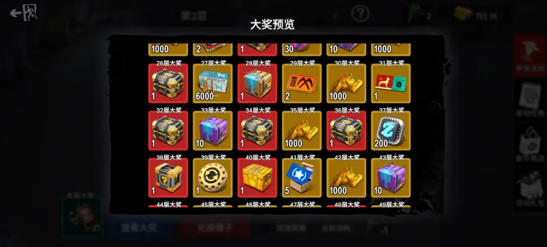 本期同样有双倍奖励玩法,消耗3个钻头可获得双倍奖励。此功能建议在较高价值的大奖层使用,比如在第28层,勾选双倍后消耗3个钻头砸中大奖可获得2个高级模块自选宝箱。大奖解锁后的其余本层免费奖励不消耗锤子也不会获得双倍奖励。