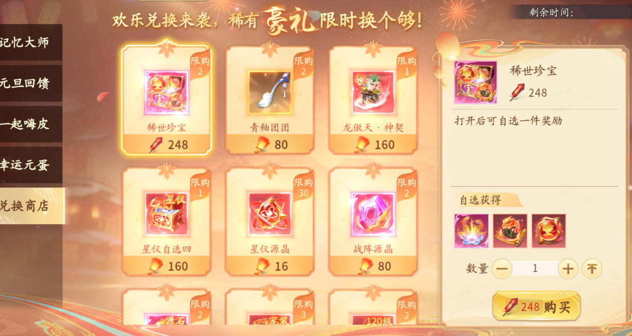 1月1日5:00-1月5日5:00期间,元旦商店限时开启,稀有豪礼限时换个够!新坐骑和超多培养材料等你来享!