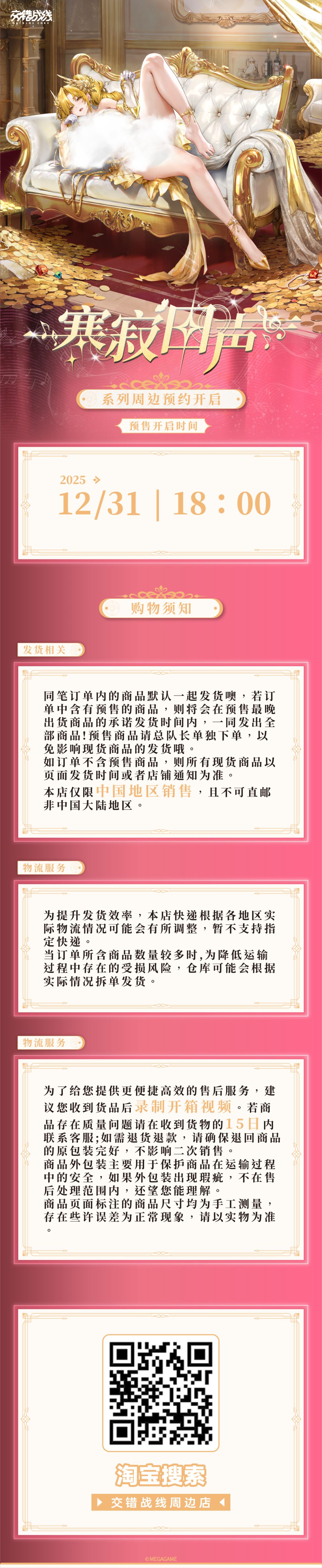 ※由于“交错战线周边店”属于新店开业,根据平台相关规则,暂时无法使用预售工具,所有货品都将在90天内陆续为总队长发货,还请总队长耐心等待