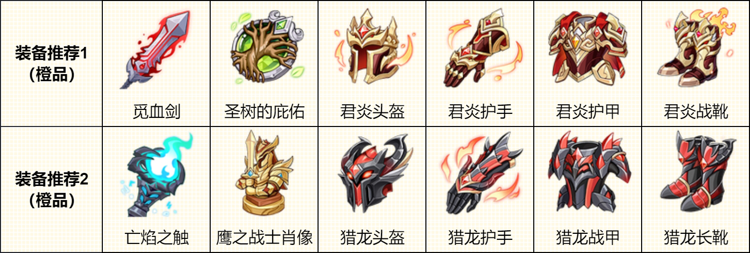 ◇ 输出向:攻击4件套(猎龙套装)+亡焰之触+鹰之战士肖像