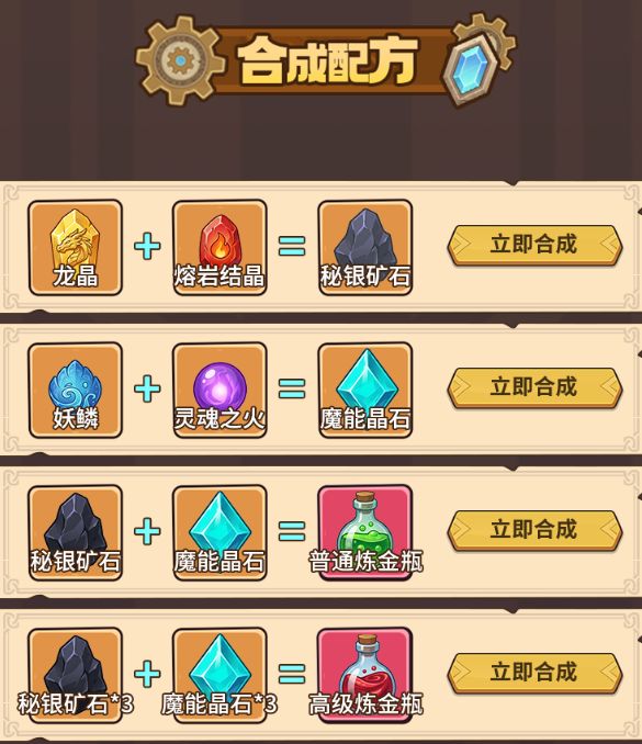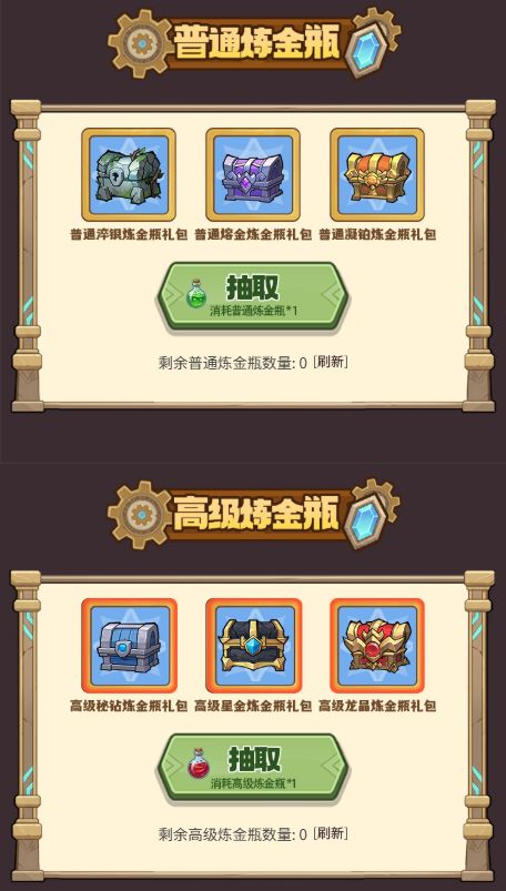 遵循图纸配方,即可合成两种高级材料,并自主炼制普通炼金瓶和高级炼金瓶。