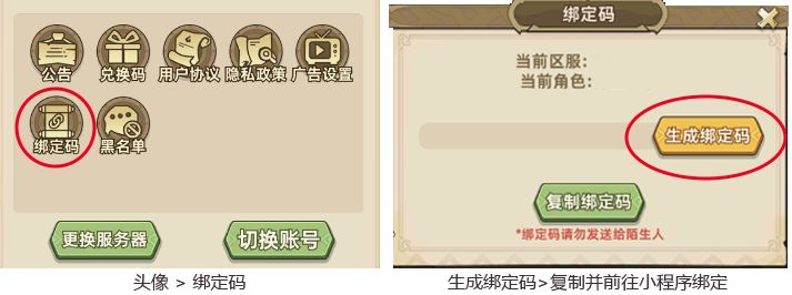 2、APP玩家请前往游戏内 - 左上角头像 - 绑定码 - 复制绑角码,然后前往活动小程序复制绑定进行参与