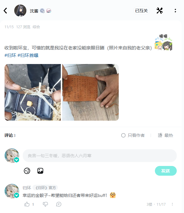 在2025年,不仅有归还者的催更与整活,更多的是收到了大家认真提出的建议,无论是夸奖还是批评,真环都在认真倾听与记录。