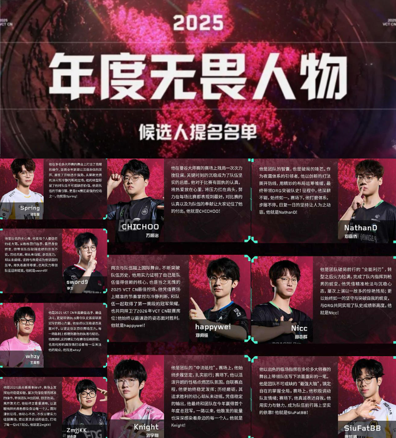 “年度无畏人物” 是 VCT CN 的最高个人荣誉,从 2021 年就开始有了,是为了奖励那些打得好、社会形象也正面的选手。