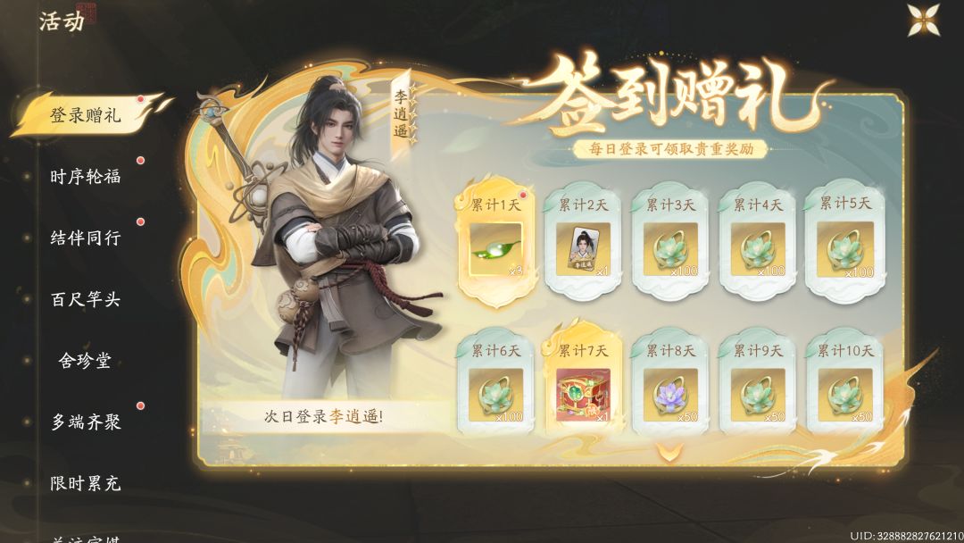 - 五星角色【李逍遥】,伴您开启新的冒险,签到就送。