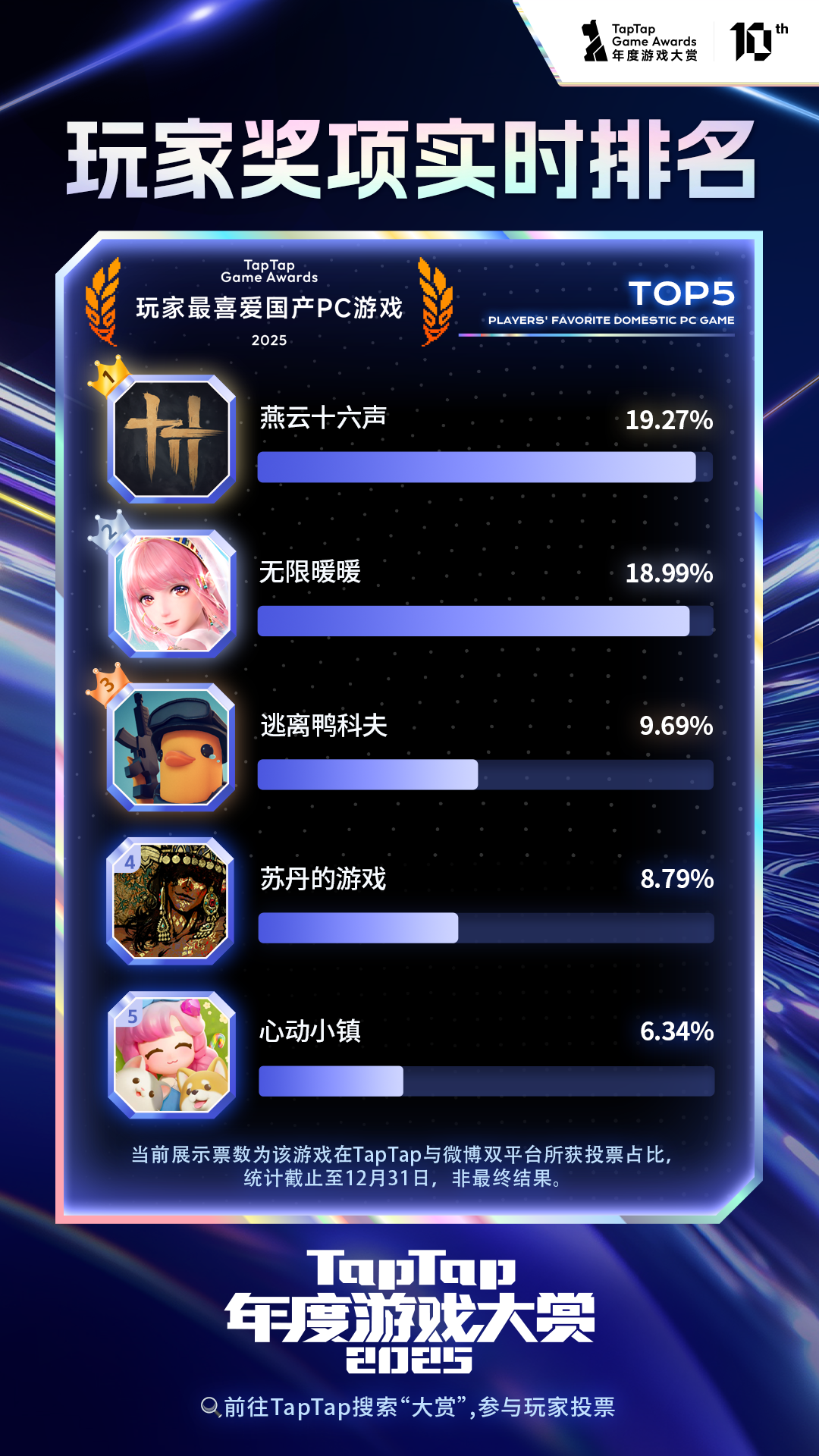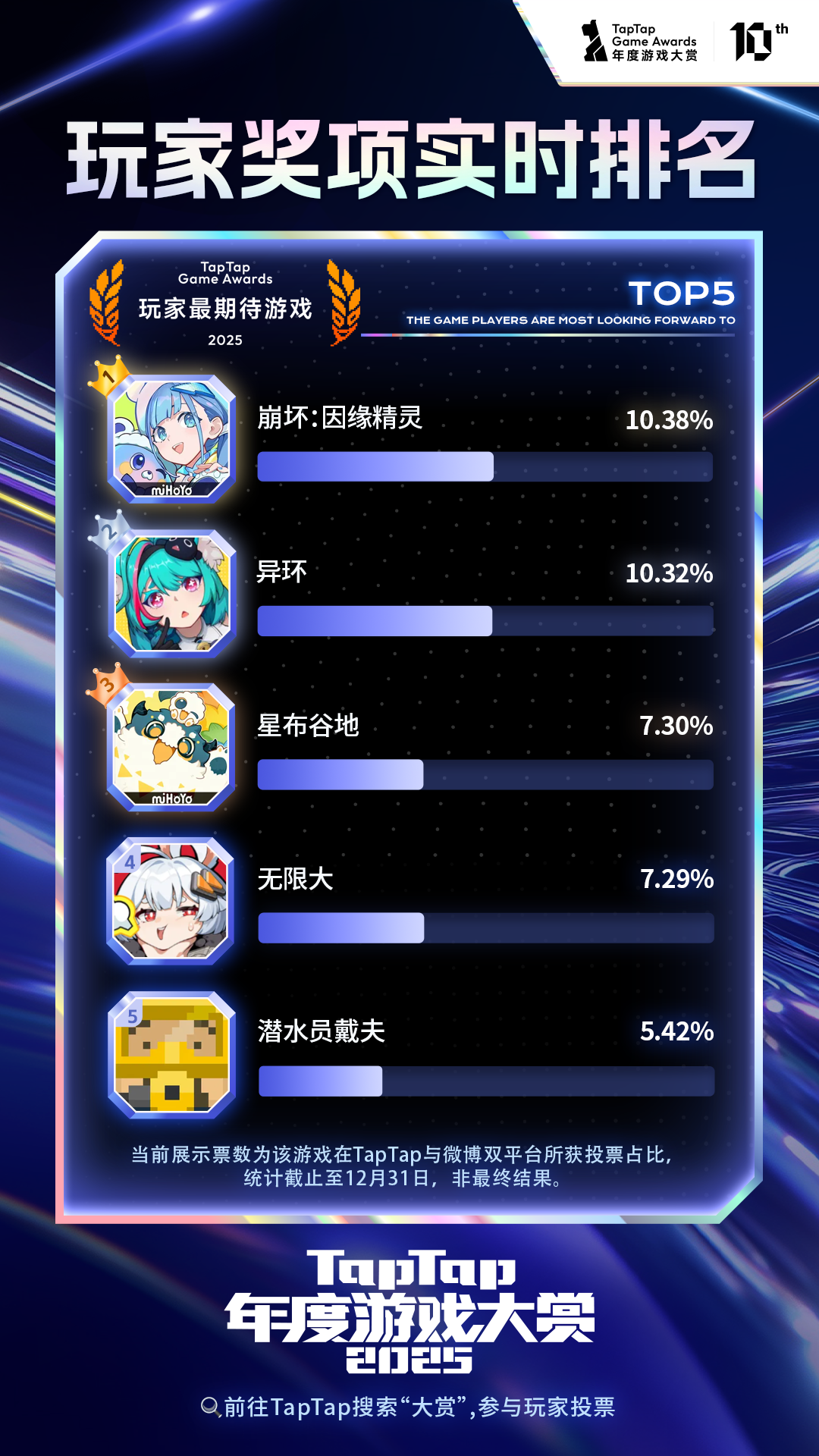 玩家奖项投票进行到第 5 天啦!这个走向……有点意思 👀