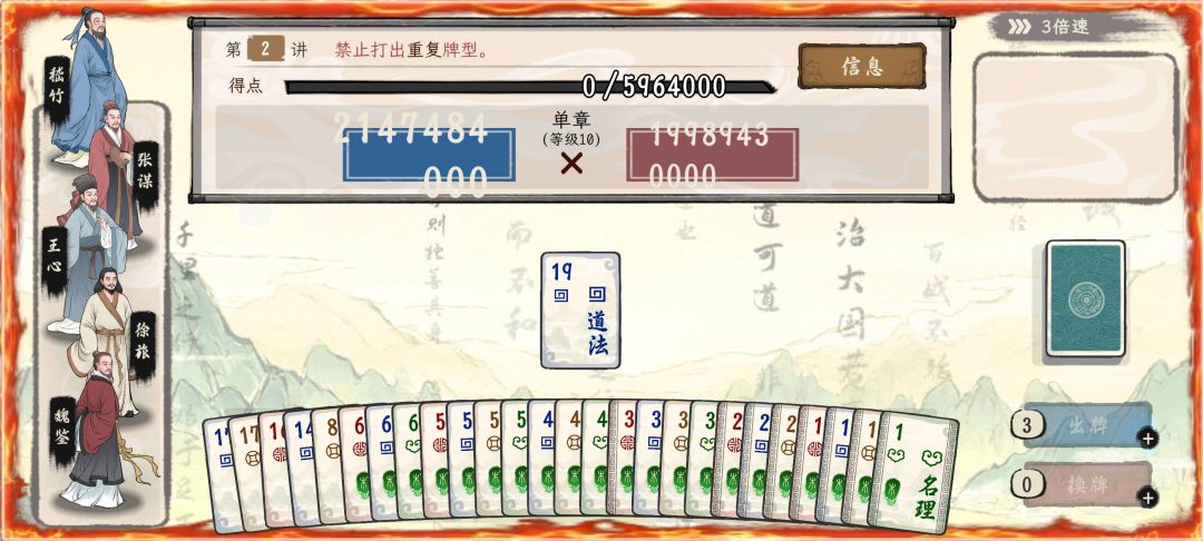 1,配队核心图二魏鉴,其他队友随意,留在手上的每张木印卡提供×1.5倍率的指数提升,搭配图三图四,打出图五的效果。