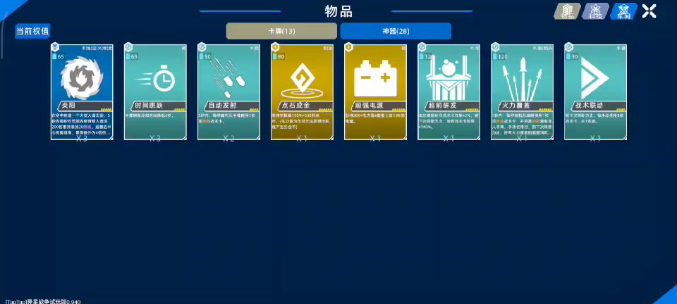 ⑥其他组件(一般不建议提前拿,但如果不担心影响权重或前期卡手可以提前拿几张):武器测试、火焰研究、战术实验、火力膨胀