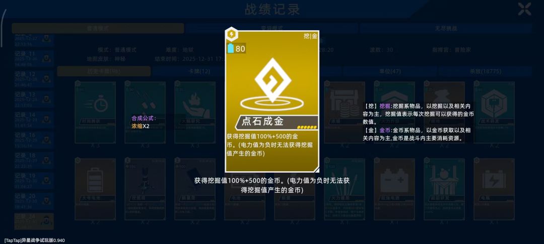 第25波的BOSS商店出来前攒钱(至少4800金),在BOSS商店删掉高能能量塔和修理,有多余的钱可以再删掉点石成金。打算连开10波狩猎挑战自我的至少攒24000金,在BOSS商店删掉高能能量塔、修理、2张点石成金。
