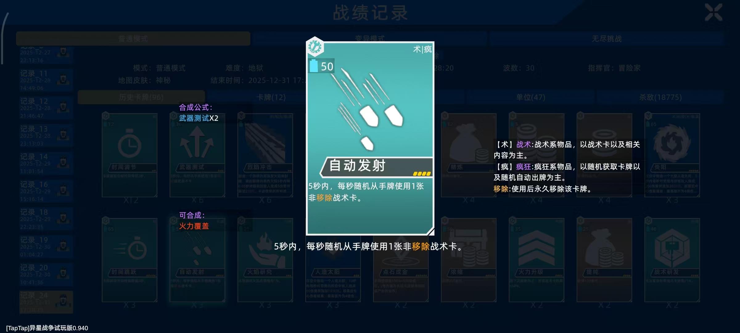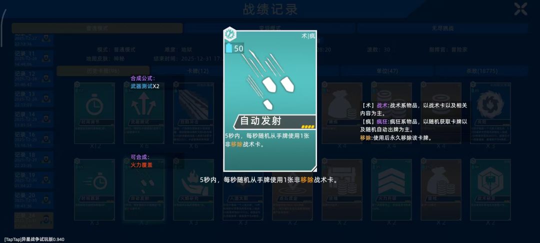 ⑤合成自动发射的组件(想提高体验的可选,1~3张都可以):武器测试×2/4/6