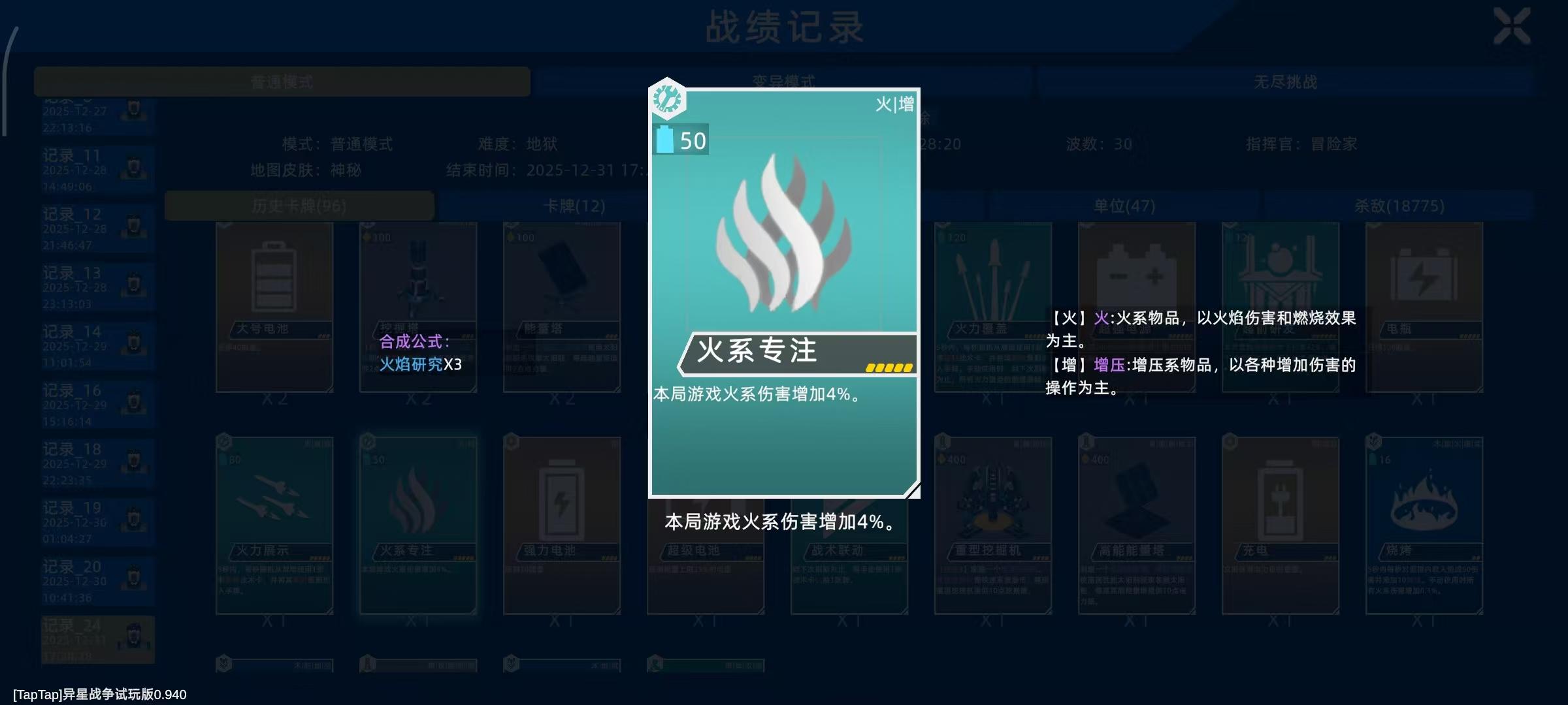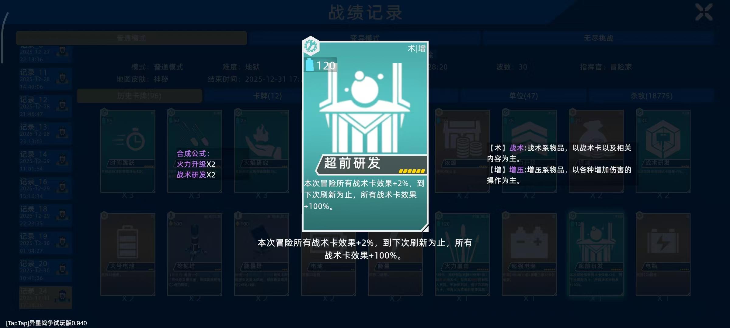 ②合成一张超前研发的组件(第二优先级):战术实验×4、火力膨胀×4