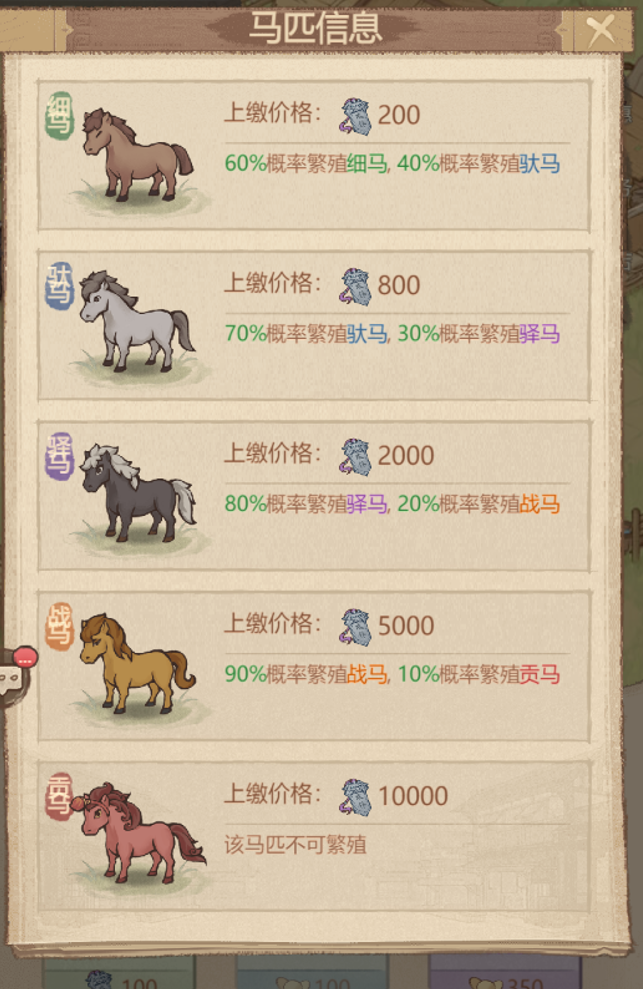红马出来养大直接卖。橙马一直保持两只无限繁殖