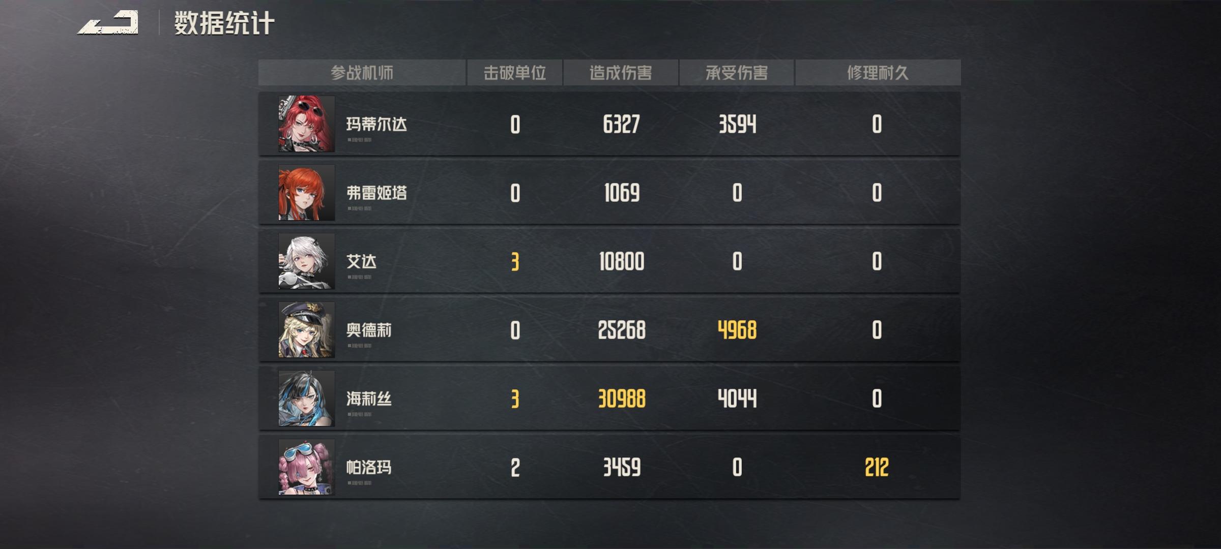 同样都是一回合,马达一命,伤害最高的海力丝反而是零命,艾达和奥德莉三命