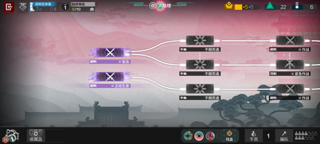 二层有时指点迷津不连误入奇境,但也别直接放弃,看看是不是可以走不期而遇和避战拐过去,当然二层玩具兵将、明抢暗偷敌人总数偏低,战力高的干员可以试试