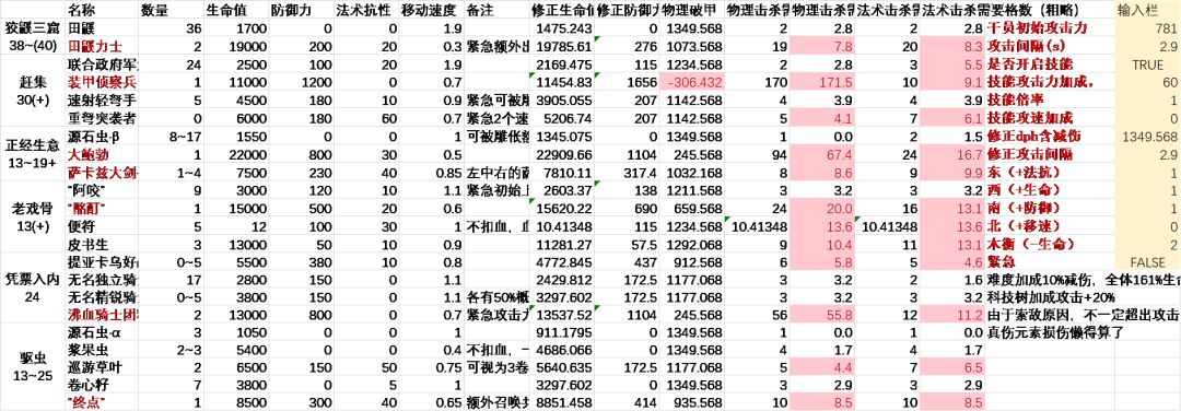 而在实践后也基本可以确定,干员通过一层的战力遵循:纯或主辅助、治疗肯定不行(特别像m3精二才能输出是不行的),地面>高台,高阻挡>低阻挡,手长>手短,有生存>>纯输出,不过具体情况还是要具体讨论,我整理了一个相关数据表格,大家可以把自己对应的干员代入算一下,对通过率有一个基本认识