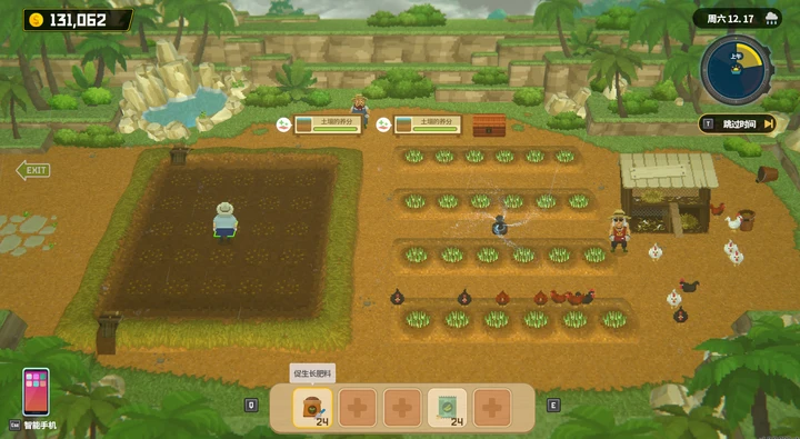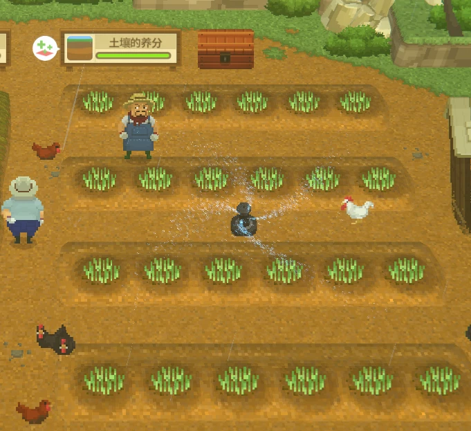 右侧区域则为田地区域,需要养分,手动播种,且日常浇水,对应种子可种植出对应作物。
