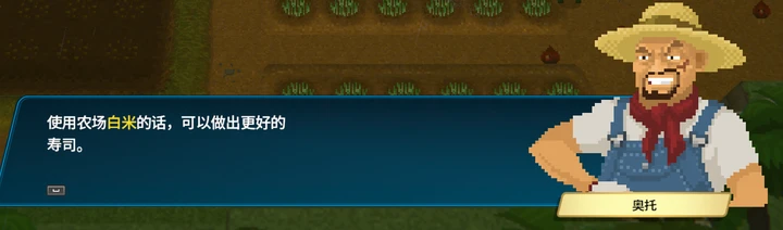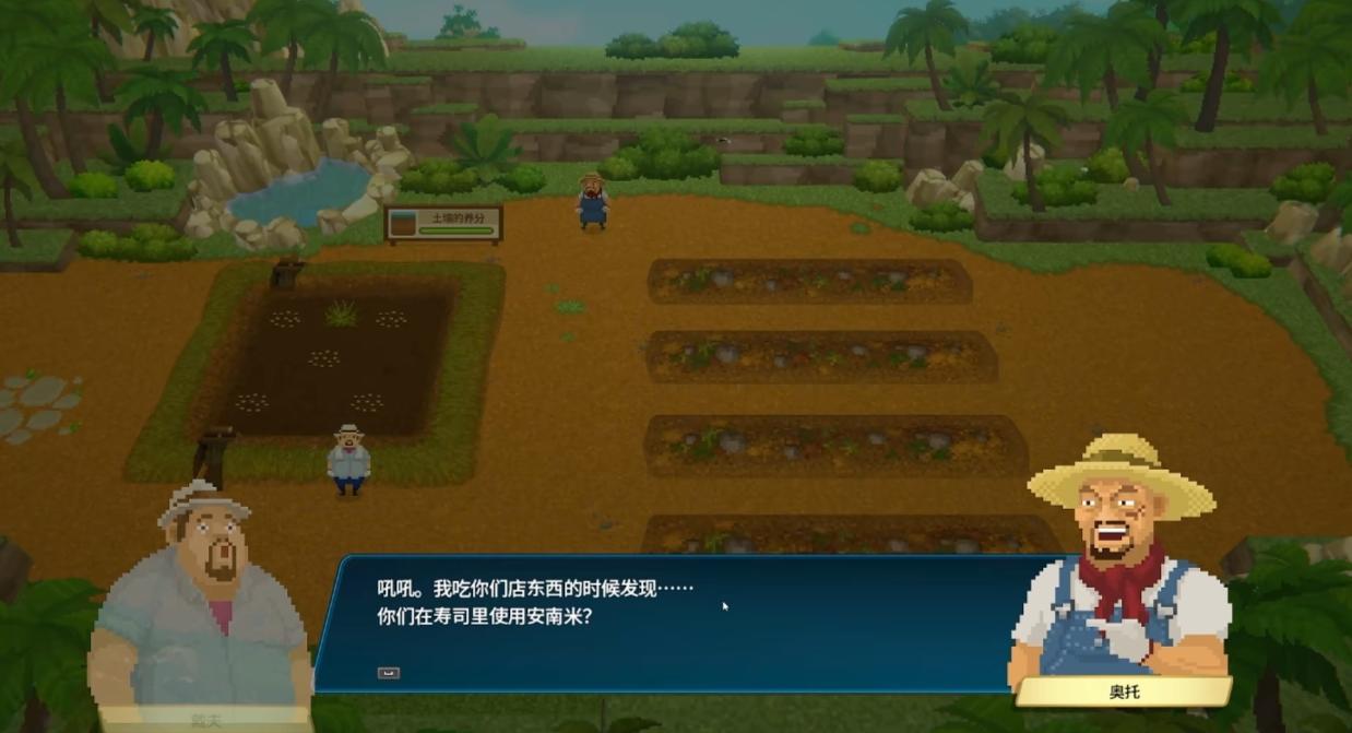 随着主线剧情的推动,会有一名VIP客人(没错,就是那位拍摄《机器人武士》的导演)来到班乔寿司店,他会抱怨这里的安南米不好吃,于是奥托便会给我们一个可以种植白米的小菜园(一天不到就建好的୧(๑•̀⌄•́๑)૭碉堡了)