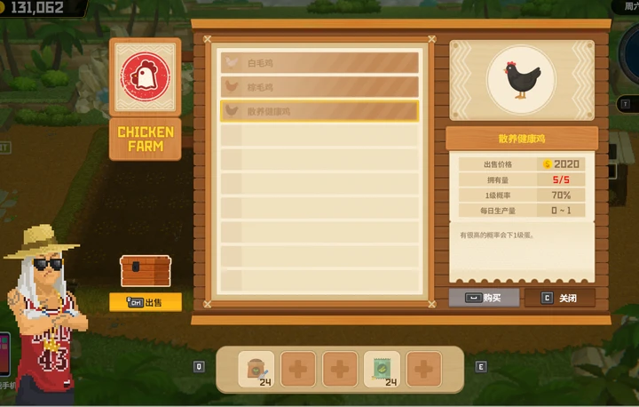 最低等级的白毛鸡是给普通鸡蛋,买了一直有,不过收益比较低,发力很晚