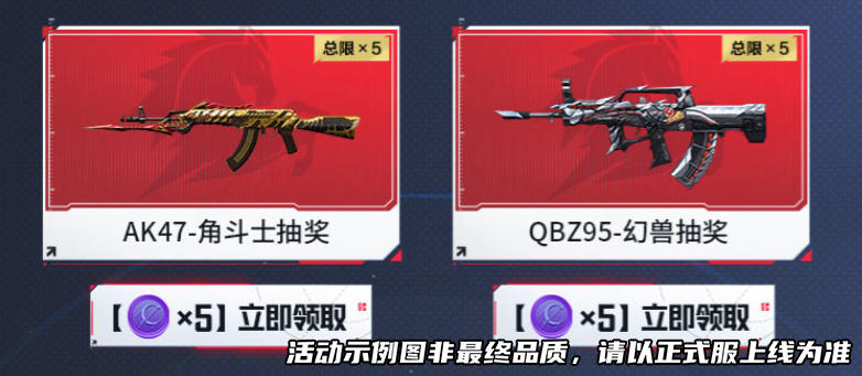 同时,还可以抽取AK47-角斗士与QBZ95-幻兽,运气好的玩家可以来试试,即使抽不到也可以整点期限英雄级武器来体验。