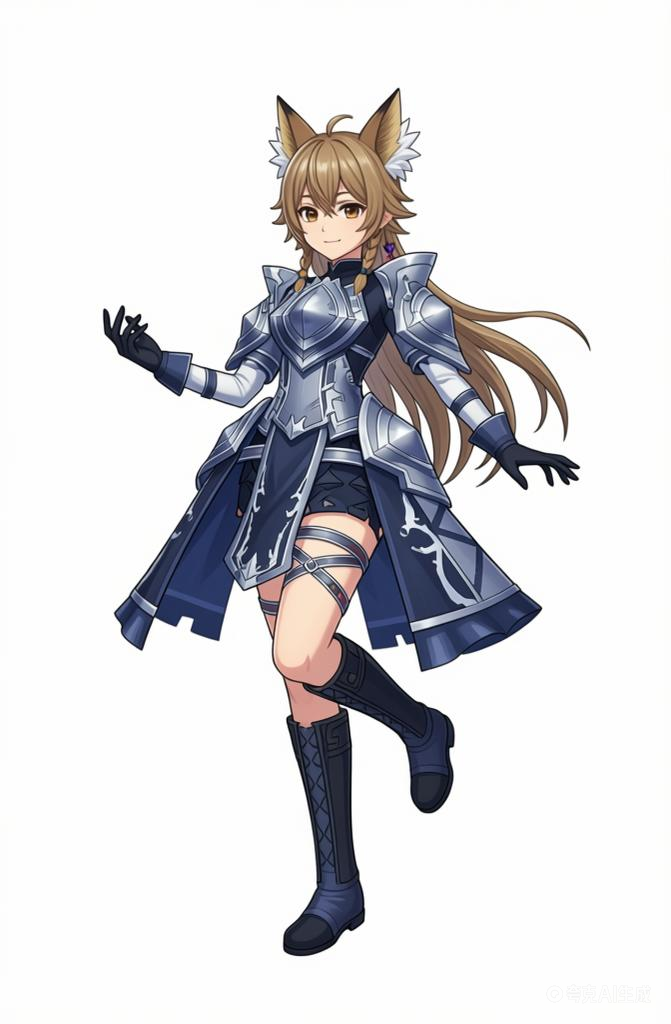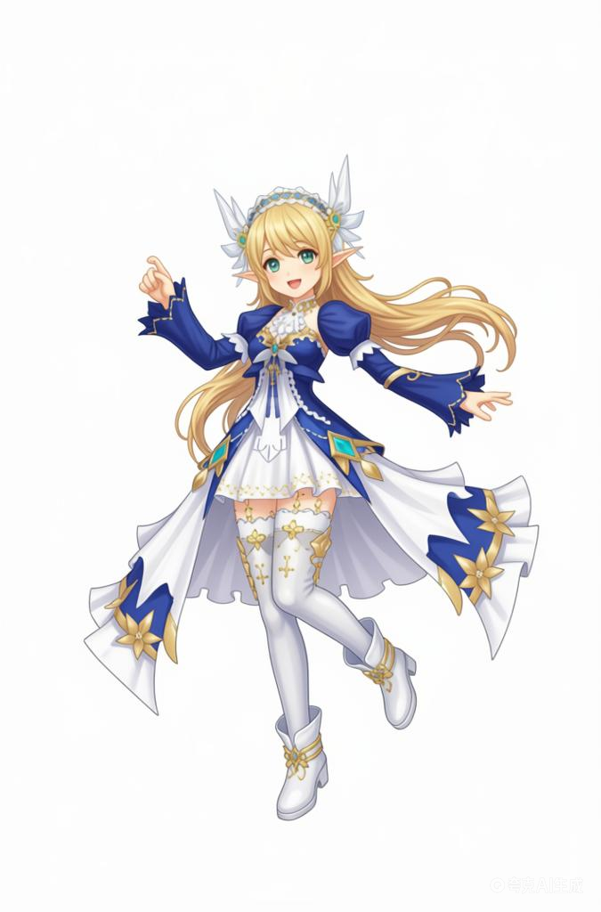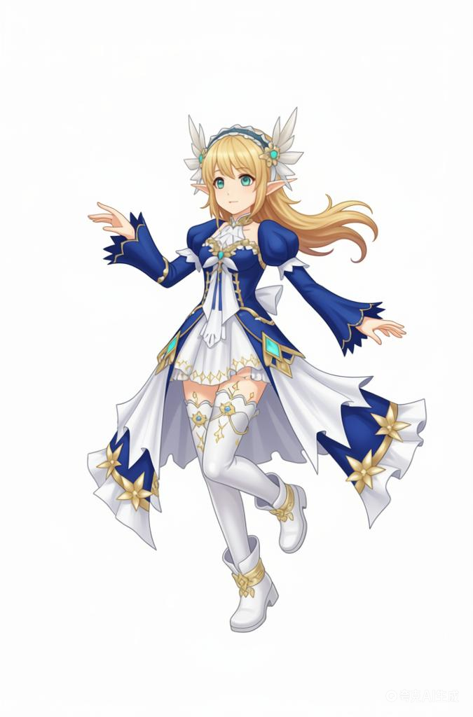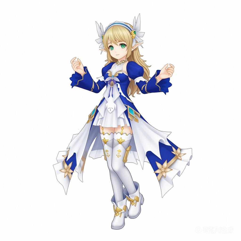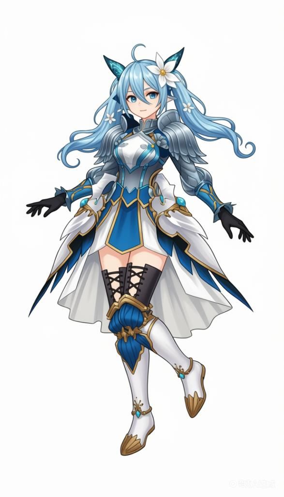 (利用以上素材。)参考碧蓝幻想画风,背景纯白,人物姿势自由发挥。