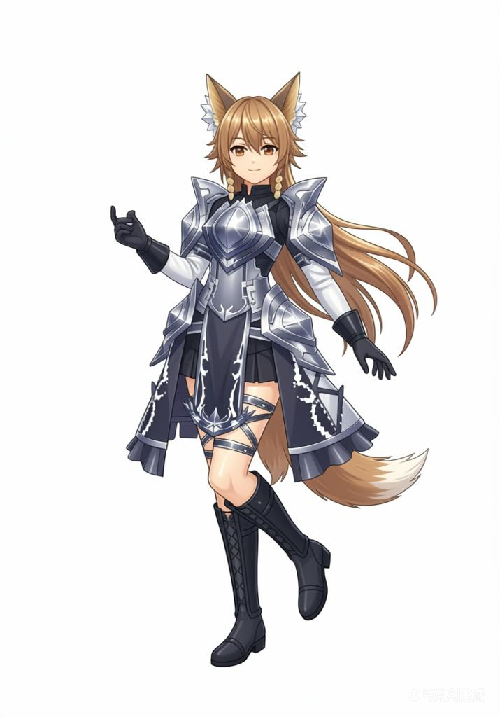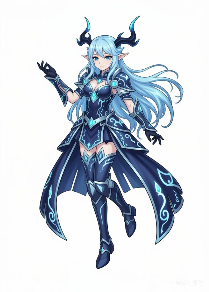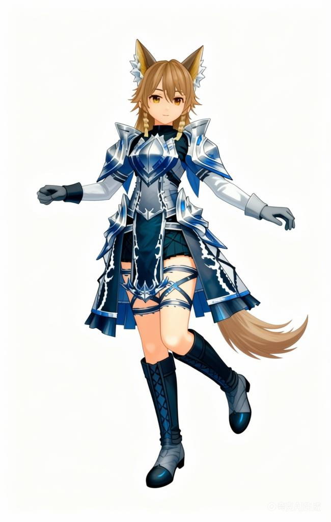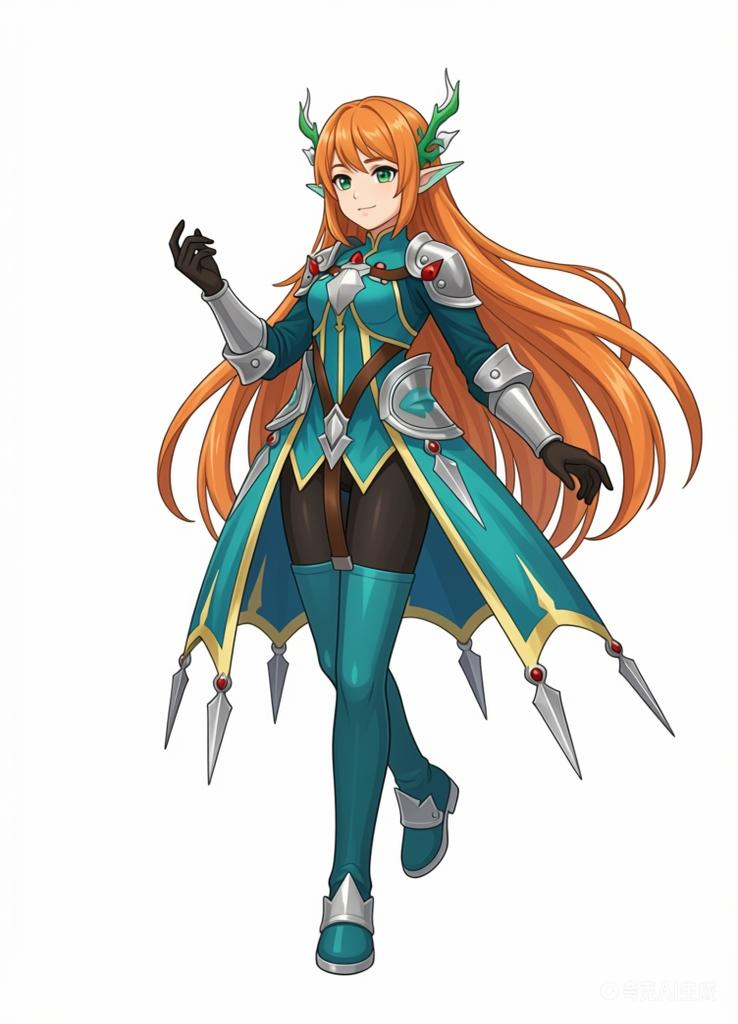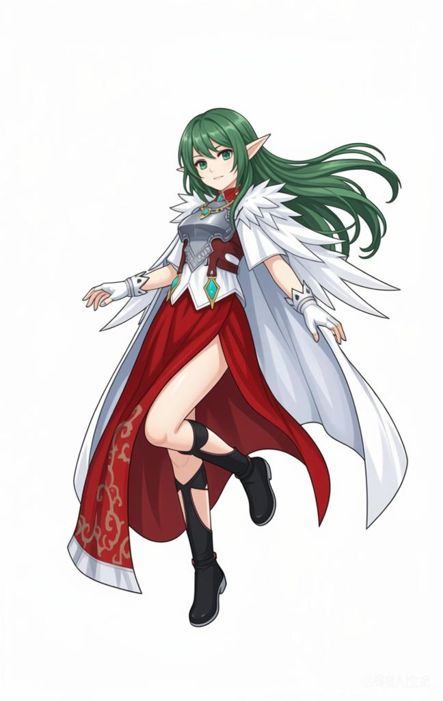 (利用以上素材。)参考碧蓝幻想画风,背景纯白,人物姿势自由发挥。