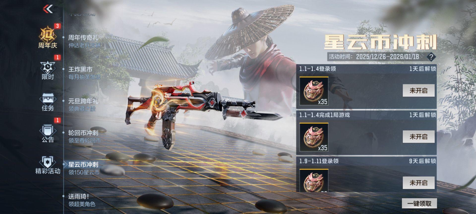 HELLO,各位看官大家好,欢迎来到本期活动合集。凤雏扭蛋机上线,竞技神器G3A3-凤雏登场,白虎武器库王者双枪镇场,累消活动同步开启,绝版道具等你解锁;轮回币/星云币冲刺,元旦跨年礼等福利活动不停歇~一起来看看2026年第一周有哪些重磅活动吧~