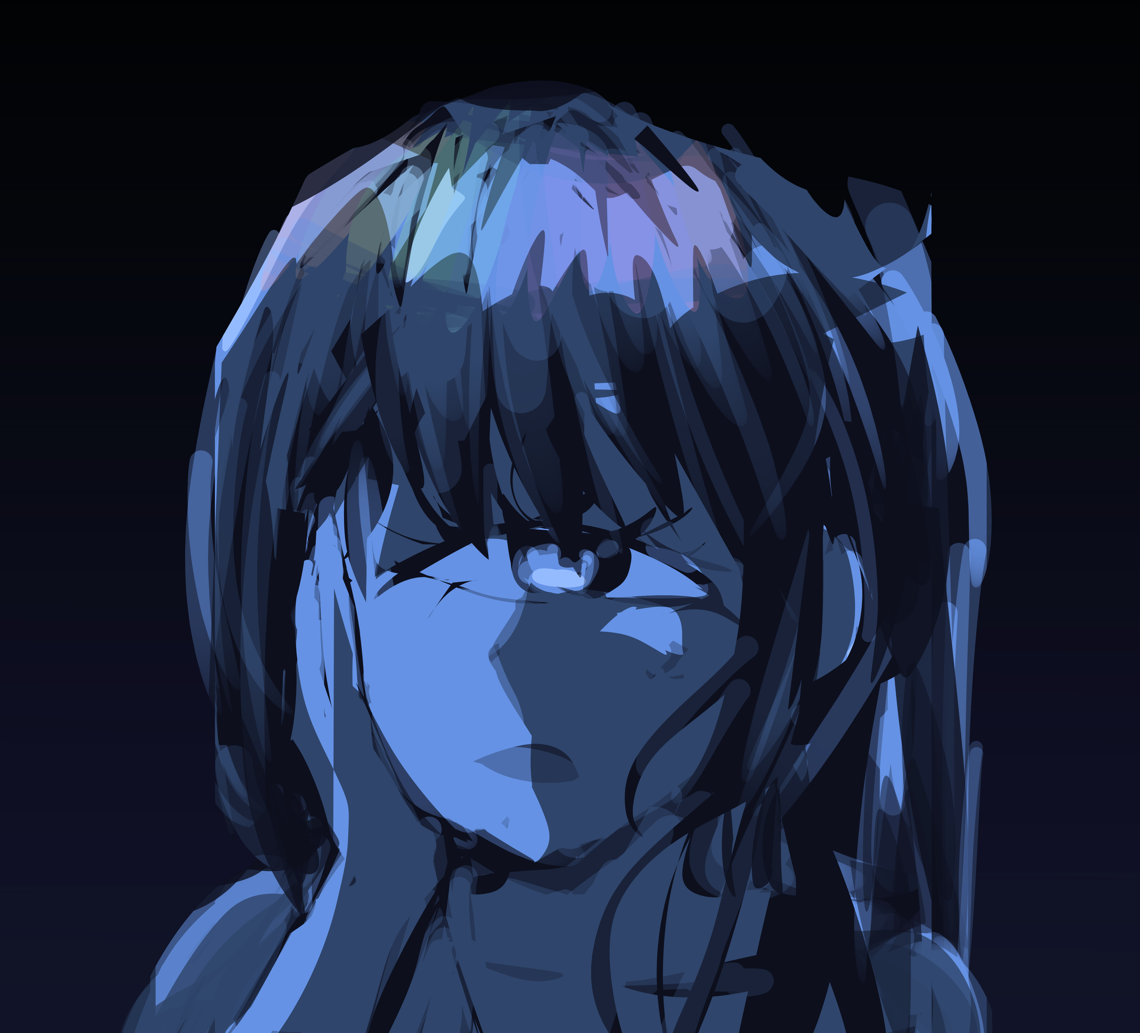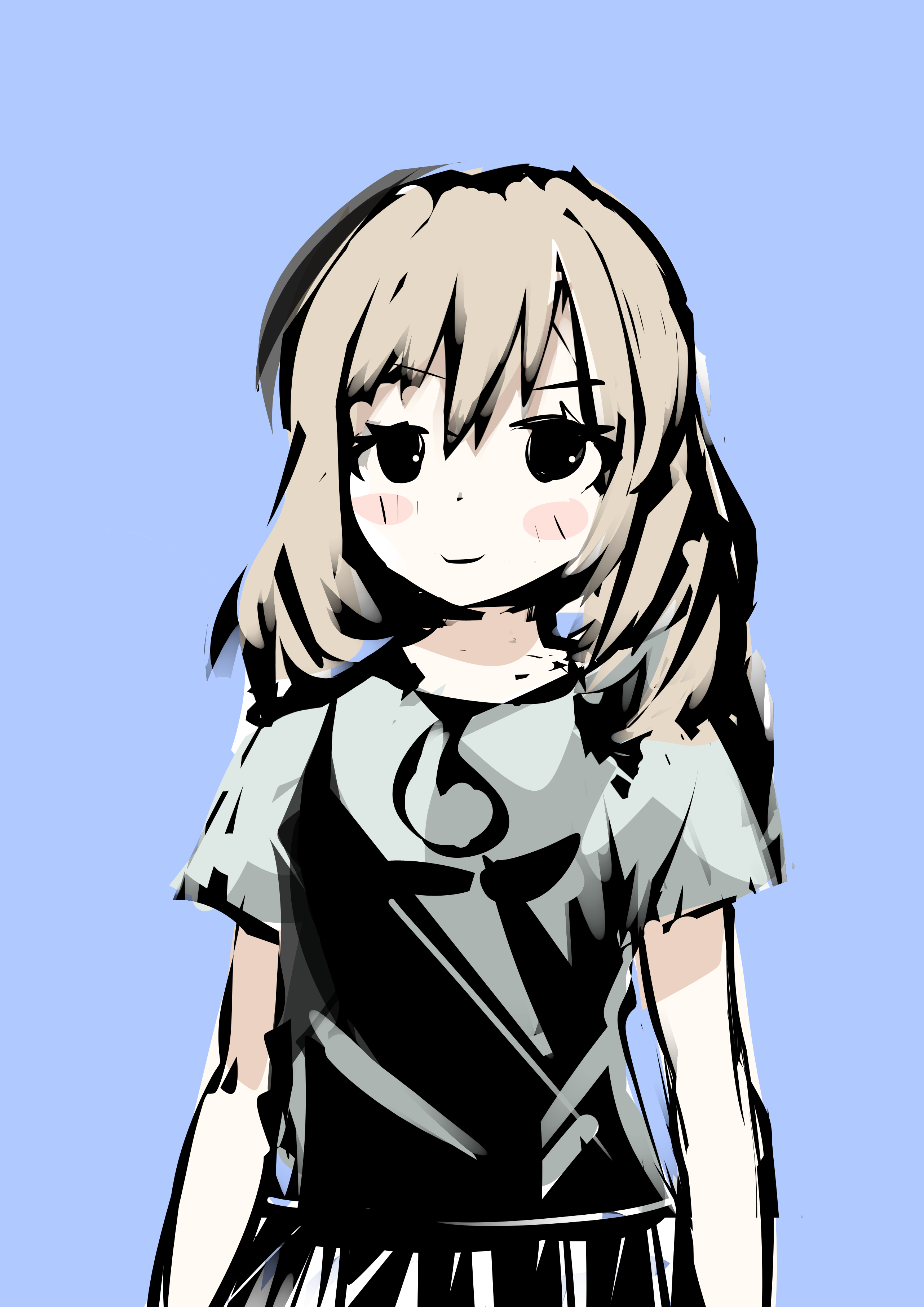 说明:这张画开始于中考前一想起,完成于中考后,原意只是用黑白色调摸摸鱼而已,后来逐渐提高完成度,我开始认真调整画面,最后选用蓝色作为底色。