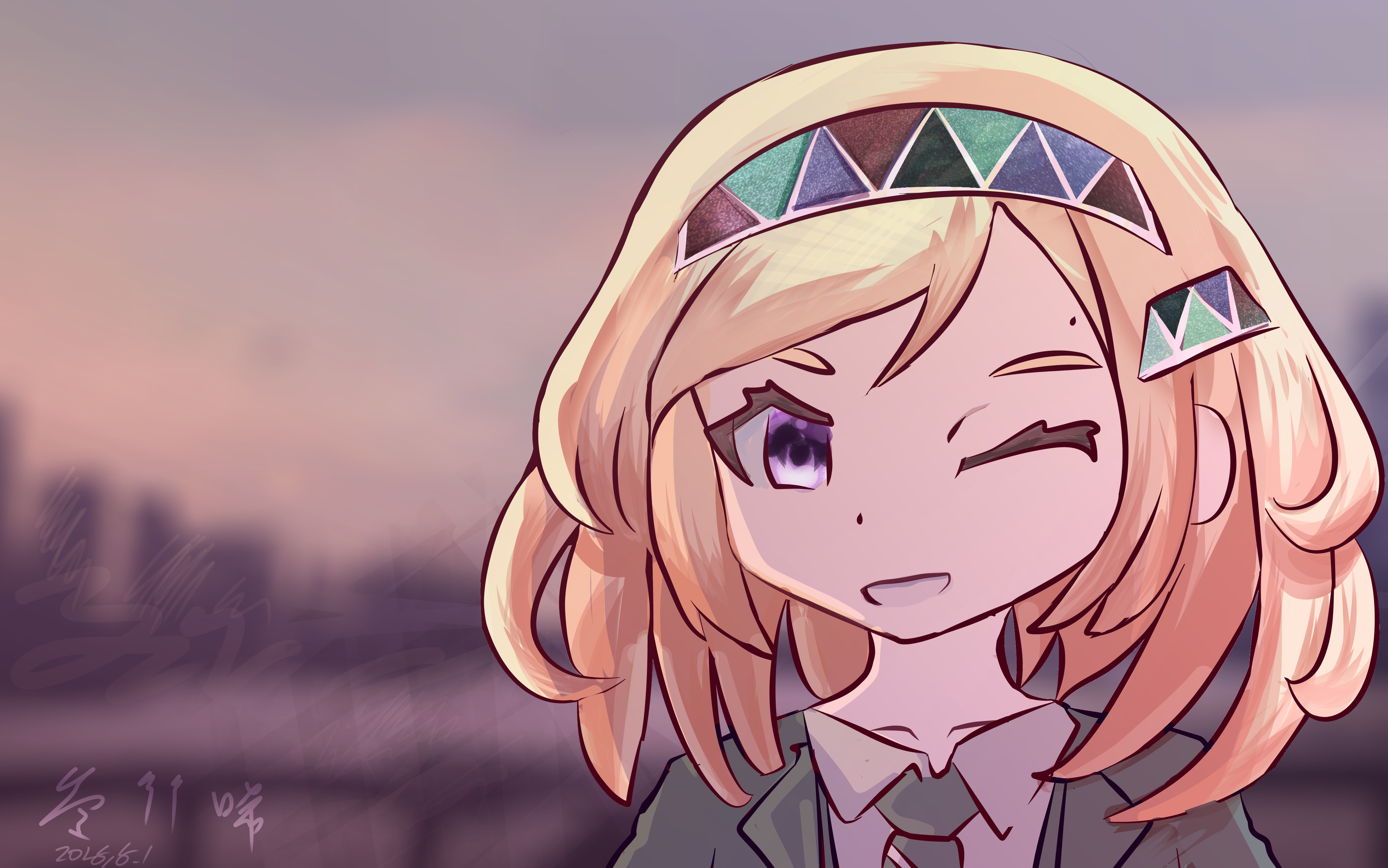 评析:朦胧的氛围和柔和的黄昏一直让人感动的风景。我很喜欢黄昏的天空,每当在这橘红色、靛蓝色,浓郁氛围里感受到世界的美丽。其中我创造的角色代表了幻想、天真、烂漫,虽然画面不是很精细,但是这张画的情感是我非常感动的