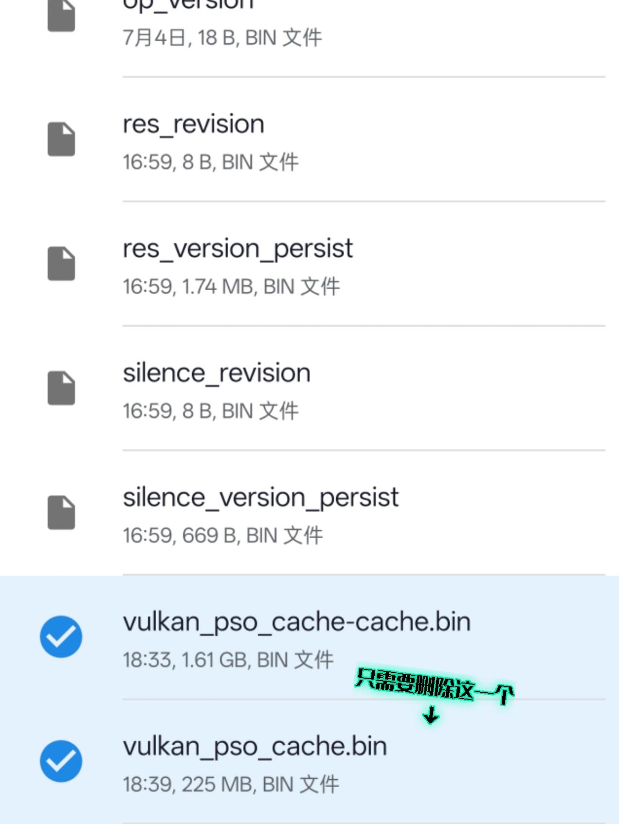 \Android\data\com.miHoYo.Nap\files\vulkan_pso_cache.bin),之后进游戏会重新编译着色器,流畅度会显著恢复(编译着色器期间不要中途切后台或是退出游戏)。只需要删除下面那个容量小的就可以