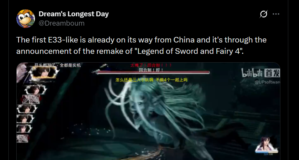 实机预告发布后, IGN和国外玩家社区迅速将其战斗系统与 2025 年TGA年度游戏《光与影:33 号远征队》(Clair Obscur: Expedition 33)进行对比.