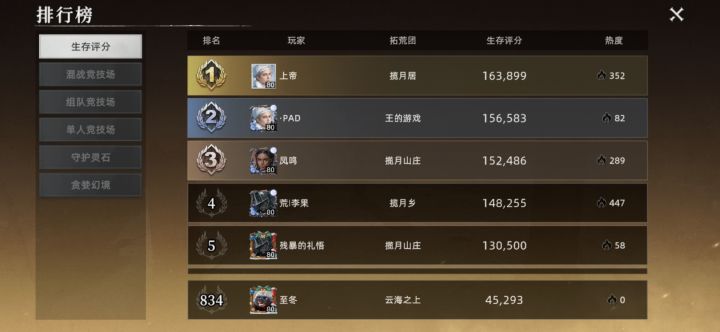 荒原曙光 战力排行榜