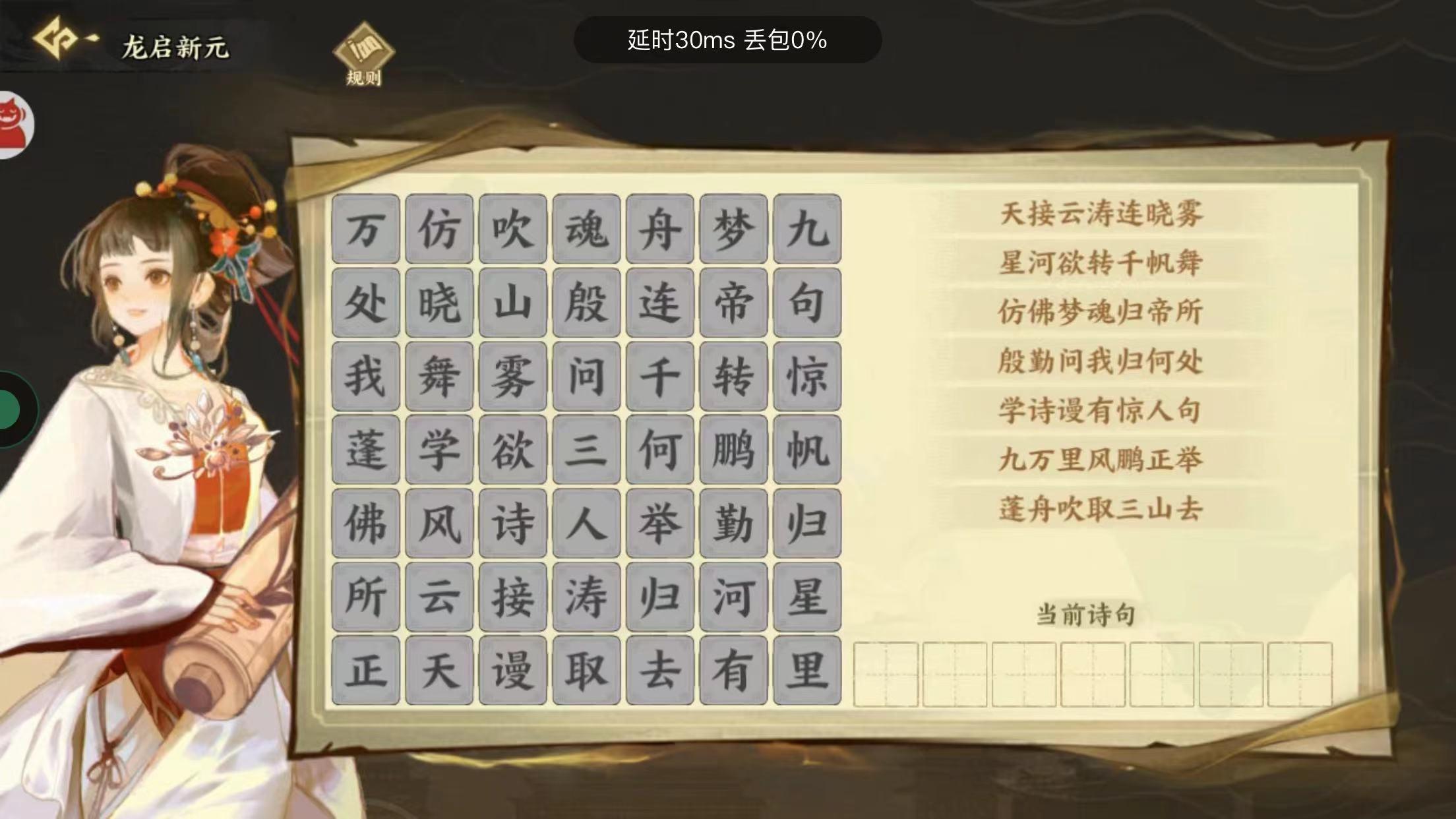 一天开两个,联字成句,点错了可以点右下田字格把字消掉。