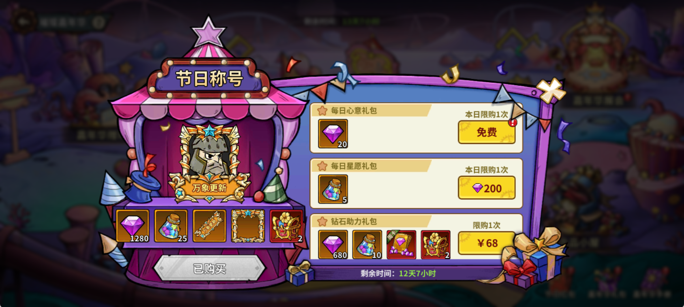 - 嘉年华礼包:购买嘉年华礼包即可解锁限定头像框以及节日限定称号「万象更新」!
