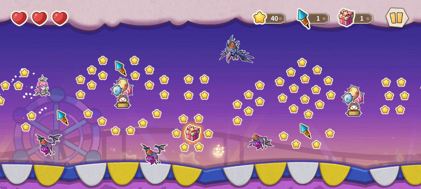 - 游学天际:点击↑松手↓,收礼避怪!星星1分、烟花10分、礼盒20分。碰怪掉血,清零失败!快来用你的灵活走位来尽量获取高分吧,在排行榜获取一席之地可获丰富奖励;累计积分里程更有阶段任务奖励。