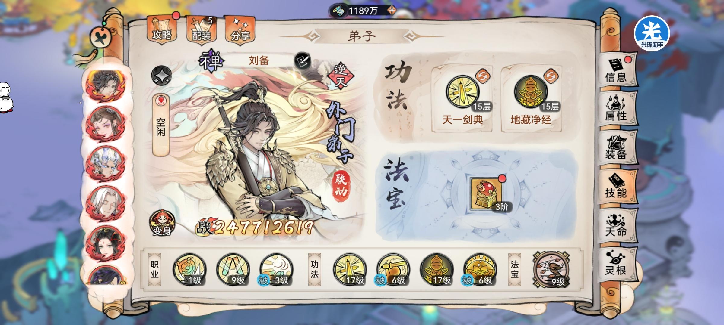 技能:地藏净经+天一剑典、凤魂仙法+天一剑典、凤魂仙法+地藏净经