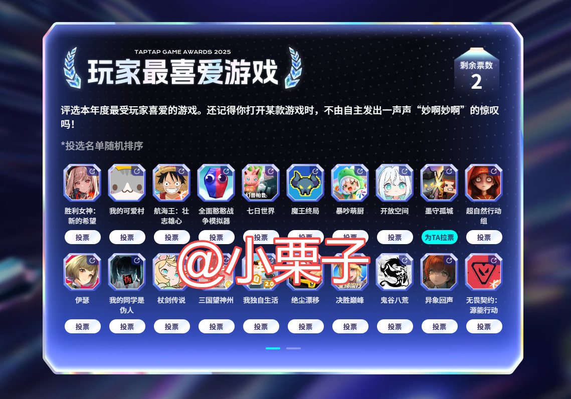 年度大赏八大玩家奖项投票已开启!来为你支持的游戏投票吧!