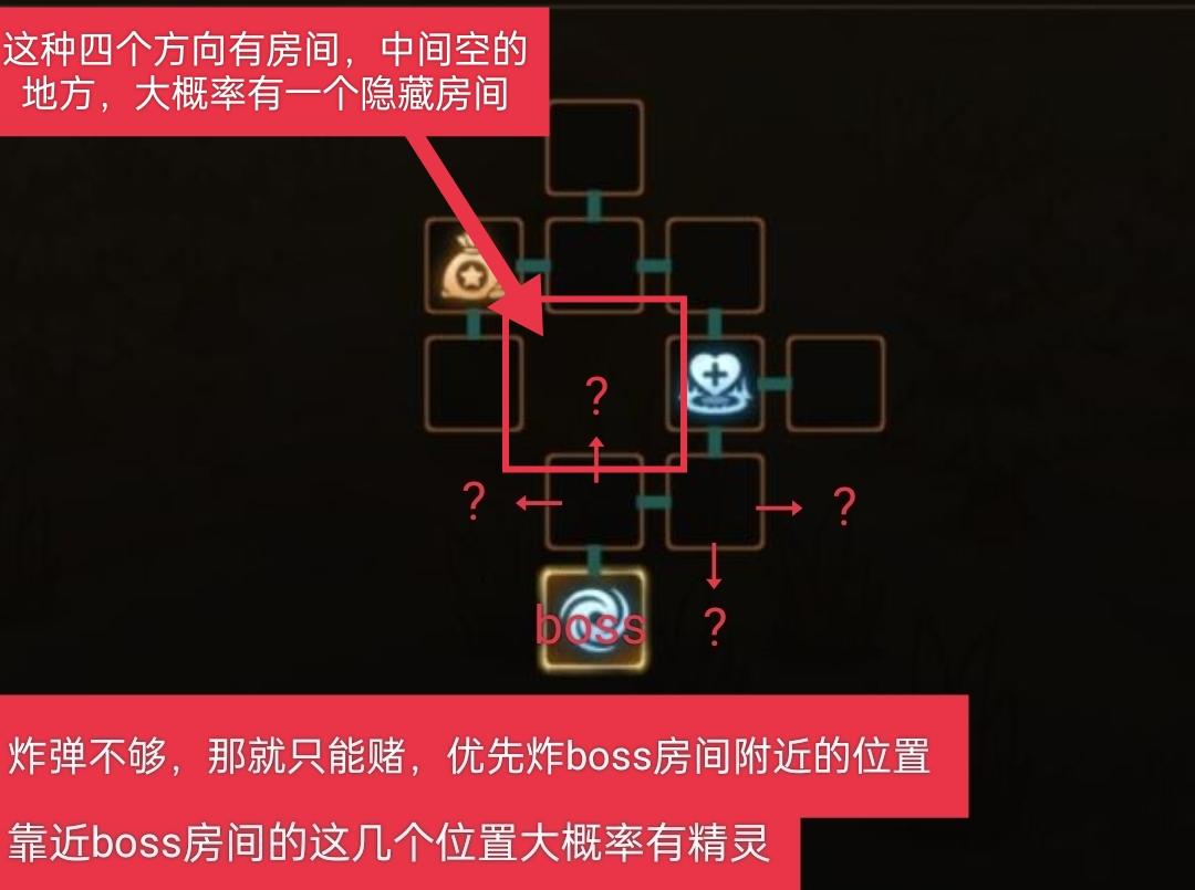 1.搜隐藏房间的前提,一定要先把其他房间能打破的木桶或者箱子都打破,把炸弹都搜到,除了Boss房间(进了boss房间就不能出去,如果打不过,那就不要进来搜炸弹)↓↓↓