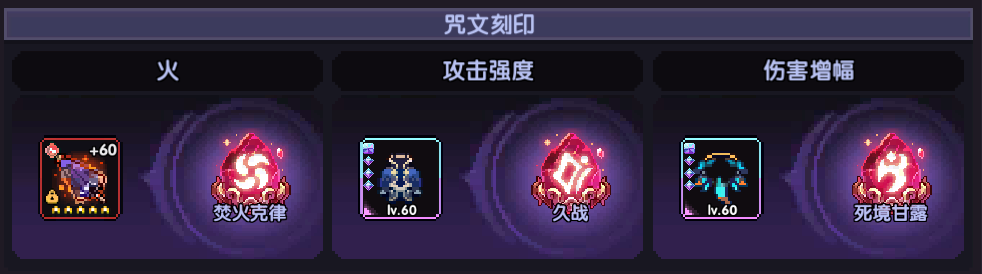 - 防具卡:主属性攻强百分比+副属性火攻/攻强