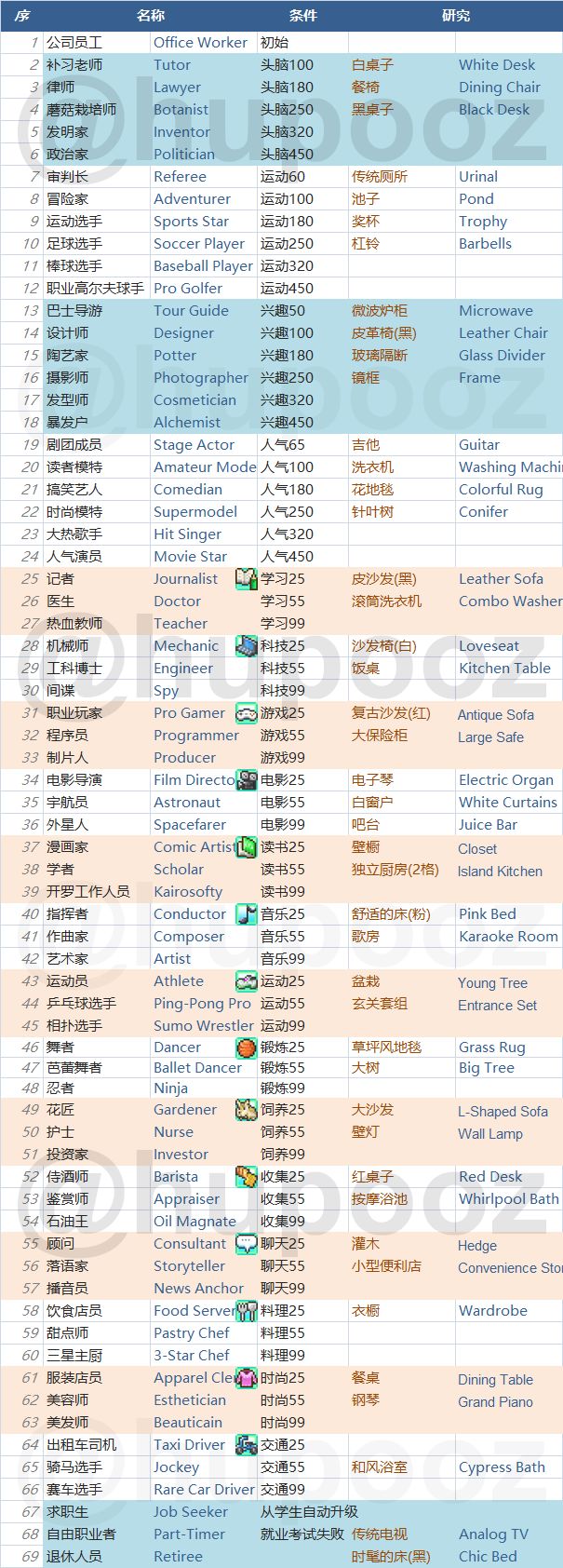 一开始求职失败,我重进存档几次还是失败,正在思考使用转职通,还是给他添哪些家具能把数值刷上来(兴趣聊天25发现职业顾问,但是不知道要不要刷到聊天25才能入职。头脑也不知道要刷多高。)
