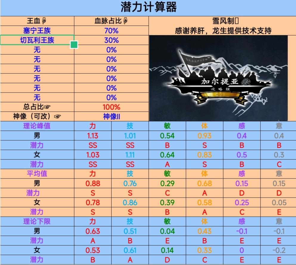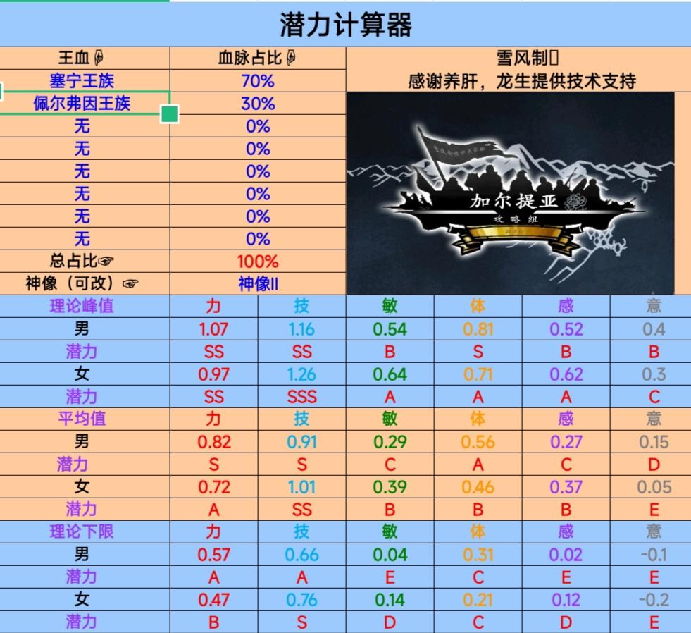召唤下计算器看看。仅展示而已。简单说一下 上限数值特别少。纯血女塞宁3s。没见过几个 。。。。均值就是通常情况。下限不用多说了!