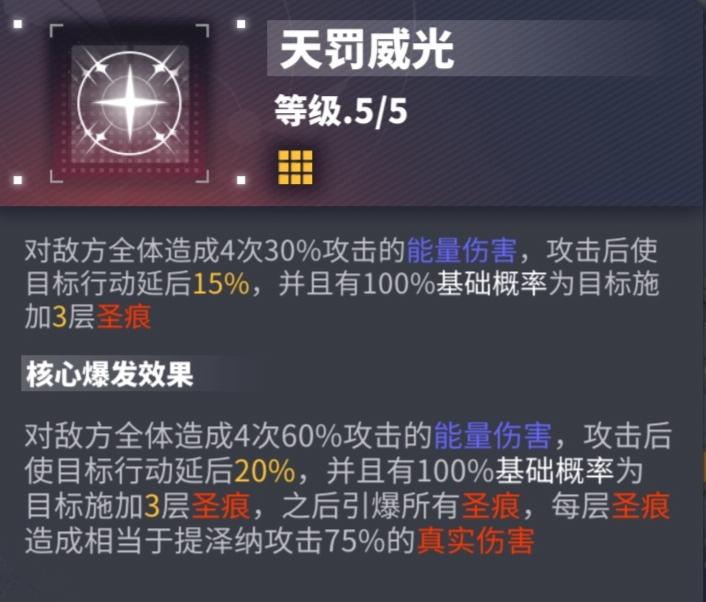 大招aoe并且100%基础概率挂上3层圣痕,并且推条15%,od则可以引爆所有圣痕且每层圣痕造成75%真伤,3层圣痕225%真伤,6层圣痕450%真伤,这个真伤可以吃增伤和易伤。