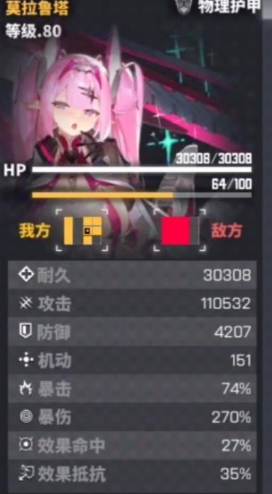 满特性叠满后可以永久减300防和20%易伤,敌方回合开始前受到莫拉鲁塔600%攻击力的真伤,并且同调后这些效果可以翻倍。