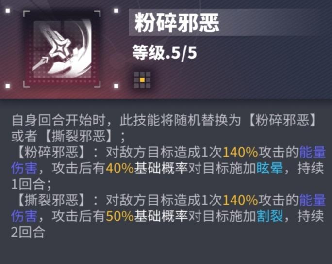 效果命中可以提升攻击力,敌我回合开始前给自己永久加效果命中,敌我回合结束后伊根会对随机目标使用2技能,敌人身上的劣化数量达到5个就会引爆3个。