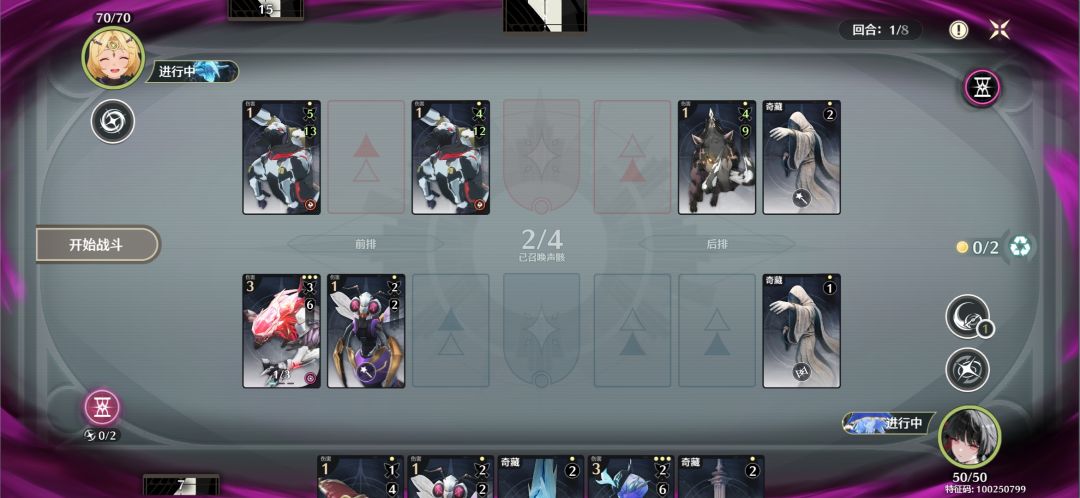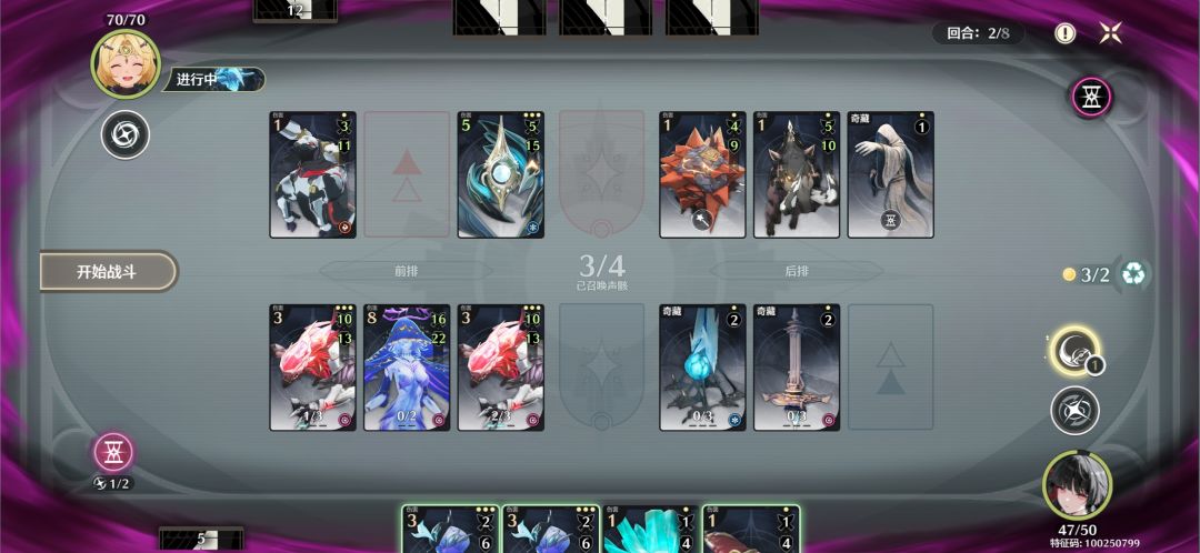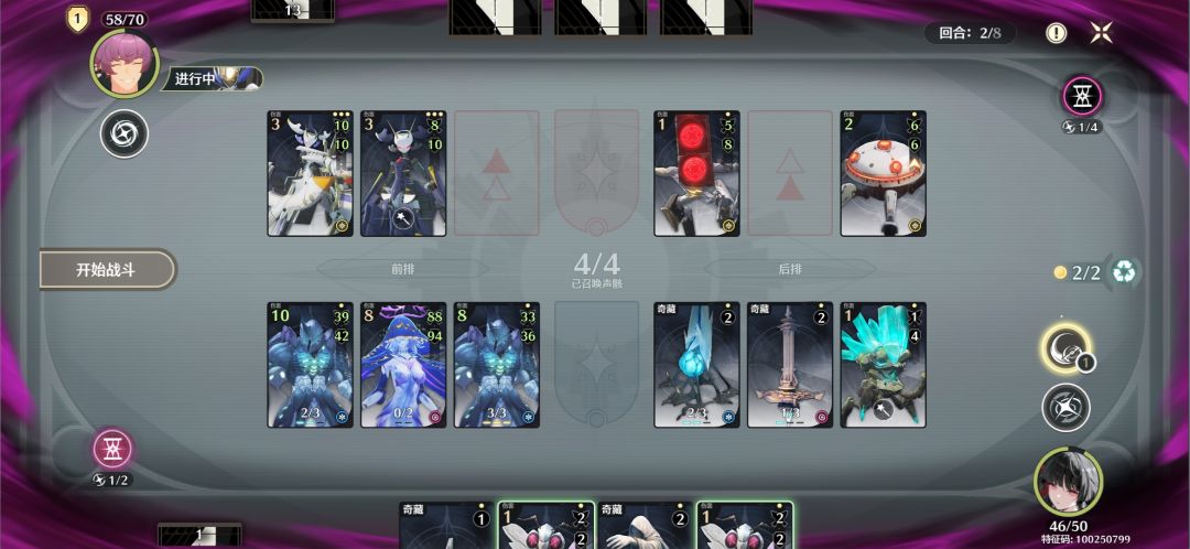 最后,在你刷到不想刷的时候,也可以选择将奇藏:刻像路标重新放在场上,然后再将之前两个奇藏重新上场(划到右侧卖掉再使用幼岩或角色战术技能抽牌),就像下图这个样子,就可以开始战痘啦ᕙ(`▿´)ᕗ