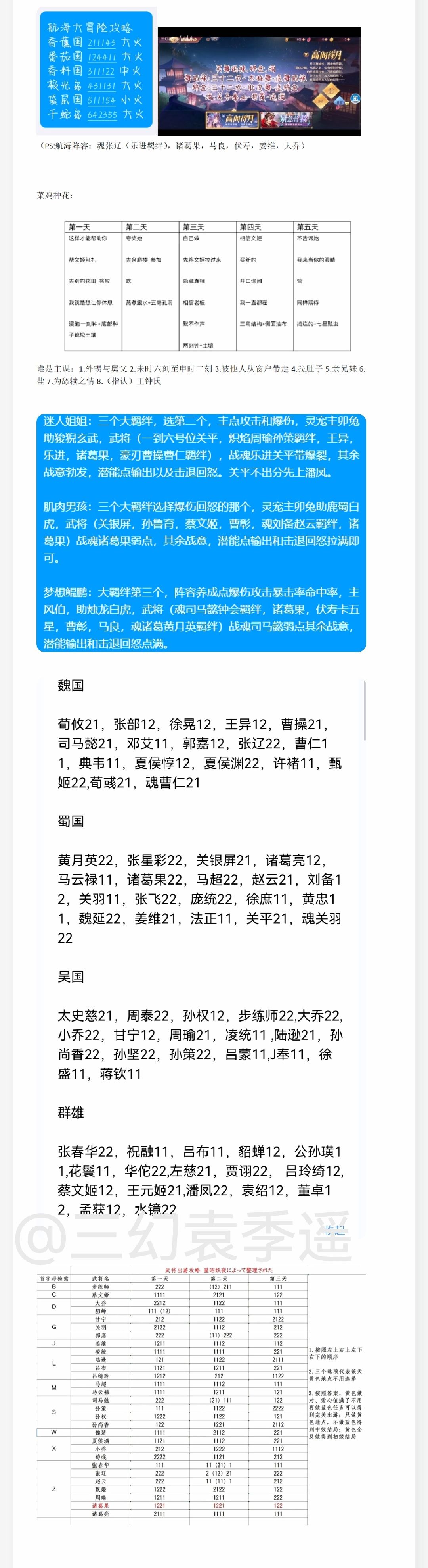第一天阵容(一到六号位,部分魂将低火的两个羁绊强度不稳定,需要亲手去试一试,已经标出)